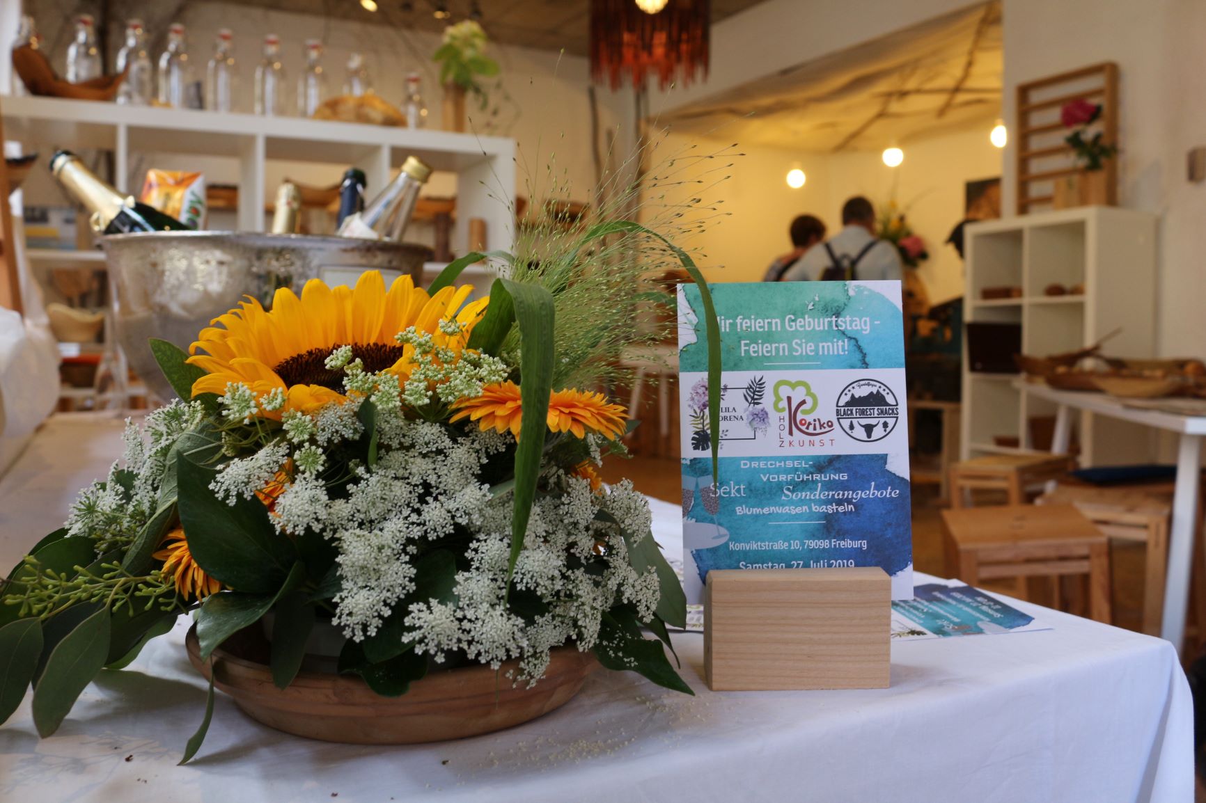 Am Samstag, den 27.Juli 2019 haben wir unser einjähriges Bestehen gefeiert – mit Sekt, Kinder-Werkstatt und Drechsel-Vorführungen.